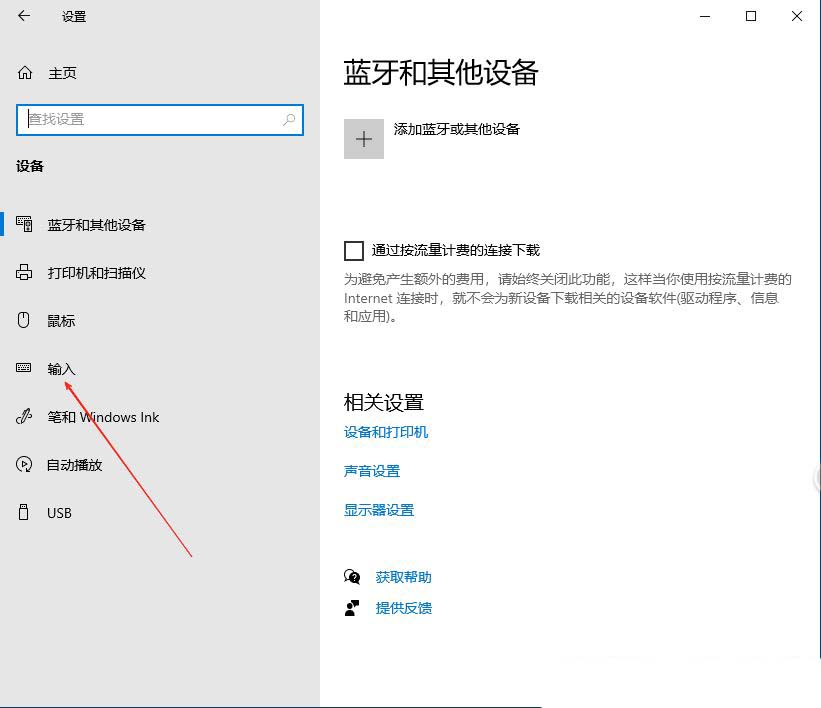 2、接着,在打开的界面中,点击左侧的“输入”设置。