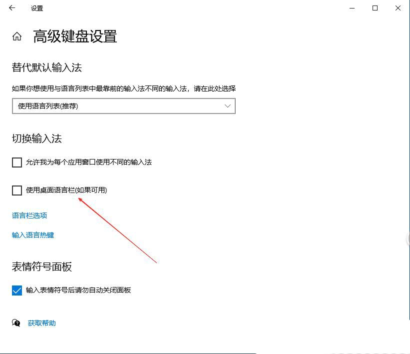 4、随后,勾选下方的“使用桌面语言栏(如果可用)”选项即可。