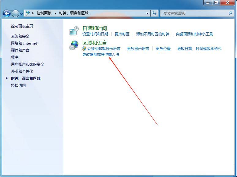 2、接着,在打开的界面中,找到并点击进入其中的“更改键盘或其他输入法”选项。
