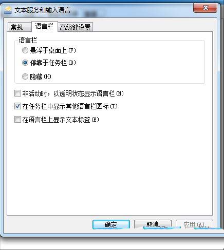 4、随后,切换到“语言栏”,并取消勾选下方的“悬浮于桌面上”,点击确定即可。