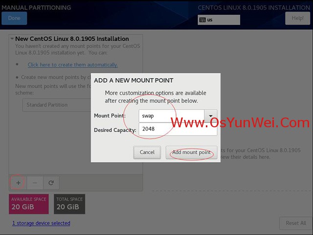 新挂载点使用以下分区方案:标准Standard Partition