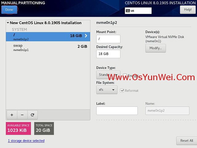 选择Storage Configuration存储配置,Custom自定义,点左上角的“完成Done”,进入下面的界面