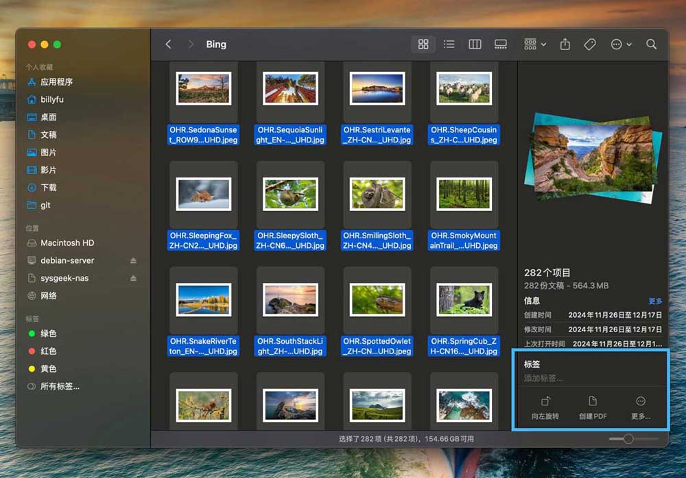 - 对摄影爱好者来说,这个功能同样给力。你可以直接在「预览」面板中旋转图片、添加标签、创建 PDF、转换格式,甚至移除背景,让图片整理变得更高效。