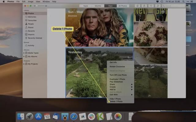 从Mac中删除照片的另一种方法是使用照片应用程序。如果你特别想删除照片,而不是在Mac的硬盘上搜索,这通常是一种更直观的方法。下面是如何删除个人照片以及如何在Mac上删除多张照片,所有这些都通过照片应用程序完成。