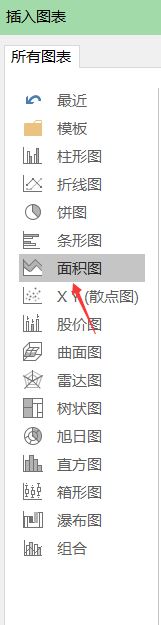 在【插入图表】的【面积图】分类中选择【百分比堆积面积图】