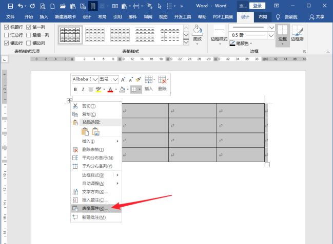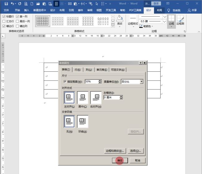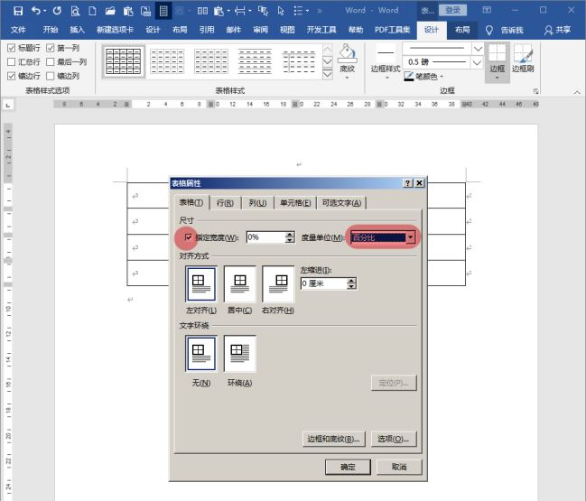 在打开的【表格属性】设置窗口中,切换到【表格】选项卡,看尺寸设置项。