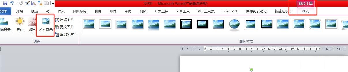2、接着在菜单栏中点击图片工具的格式选项,弹出相关的选项卡,用户选择其中的艺术效果选项