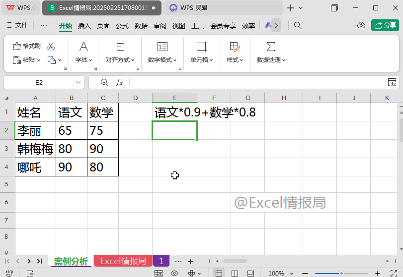 比如我们要将每个同学的语文成绩和数学成绩加权后,得到总成绩。加权规则:语文成绩加权*0.9、数学成绩加权*0.8后相加。