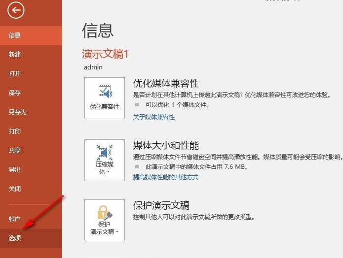 3、第三步,进入文件页面之后,我们在左侧列表中点击打开“选项”