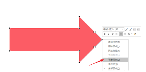 箭头周边出现多个控制点,在控制点上点击鼠标右键,点击【平滑顶点】。