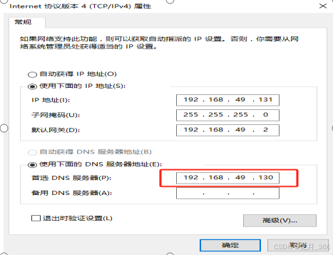 1、在ServerB服务器上配置ServerA服务器的DNS;