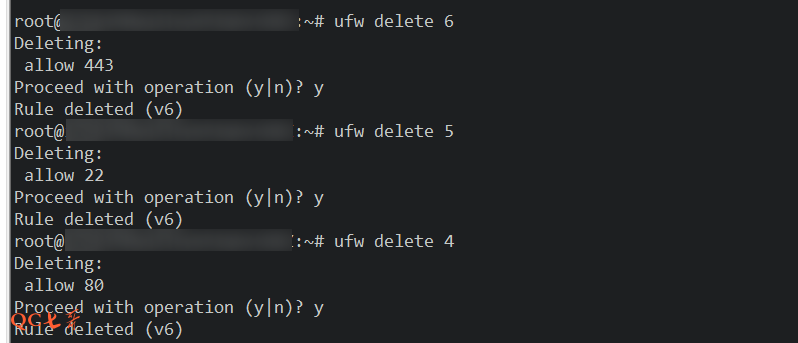 通过 ufw status numbered 可以查看规则的 numbered ,删除的时候需要通过 numbered 进行删除