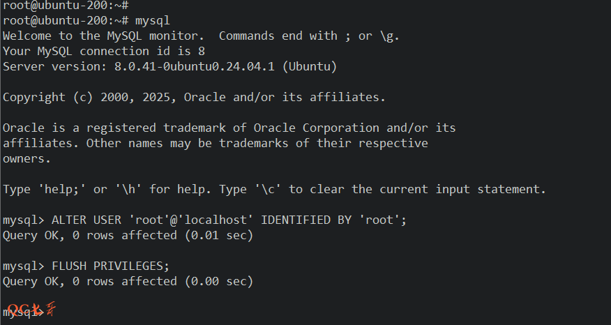 修改密码后,通过 FLUSH PRIVILEGES 生效