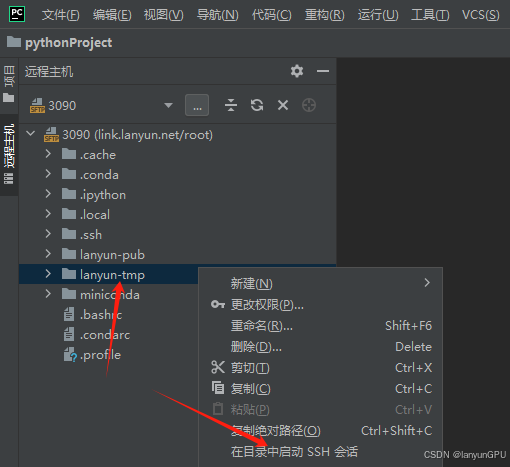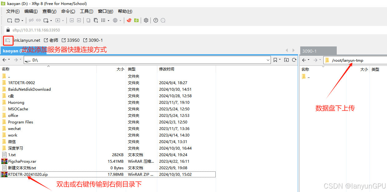 0.首先需要先找到远程服务器的ssh链接及密码,例如