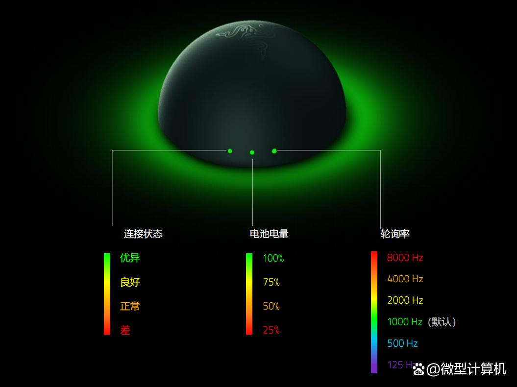 ▲在接通电源之后,雷蛇炼狱蝰蛇V4专业版无线游戏鼠标滚轮前方的指示灯能够表明鼠标当前的CPI挡位。