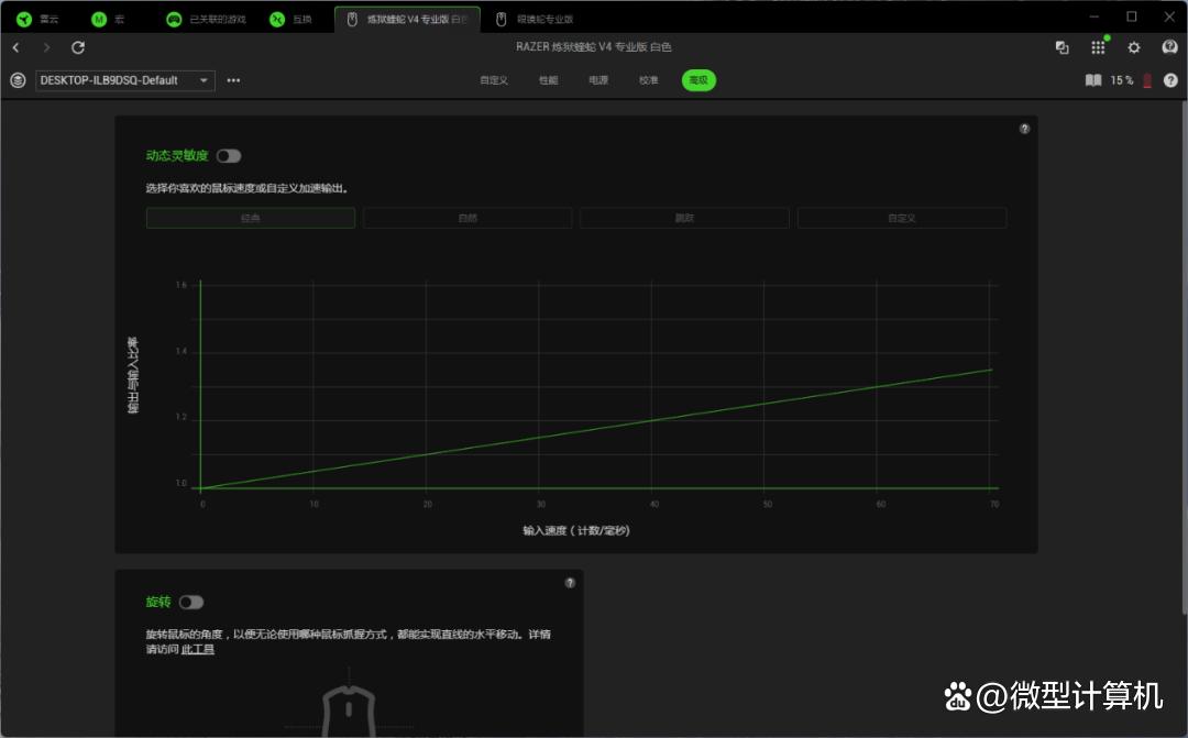 动态灵敏度调节可以更好地帮助专业玩家,使得这款鼠标能够符合他们的使用习惯,目前它拥有经典、自然以及跳跃三种预设功能,玩家也可以自行调节。正是因为该驱动的全方位支持,使得雷蛇炼狱蝰蛇V4专业版无线游戏鼠标能够更好地适合更多玩家——无论是对细节的精确控制,还是对整体性能的优化,雷云4驱动都确保了雷蛇炼狱蝰蛇V4专业版无线游戏鼠标能够在游戏中发挥出最佳状态,让玩家的操作更加得心应手。 实际体验