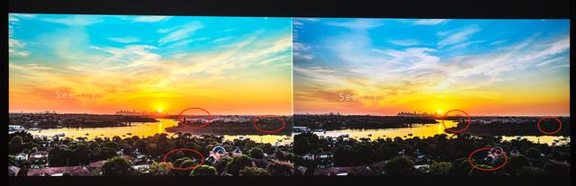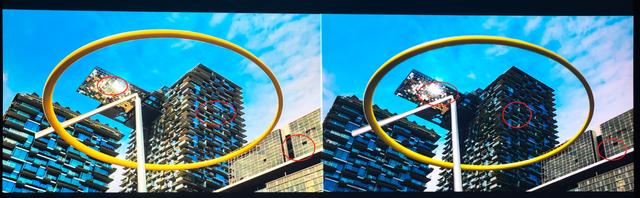 动态逐帧映射技术开启之后,红圈内下图明暗对比更明显,更能体现光影效果