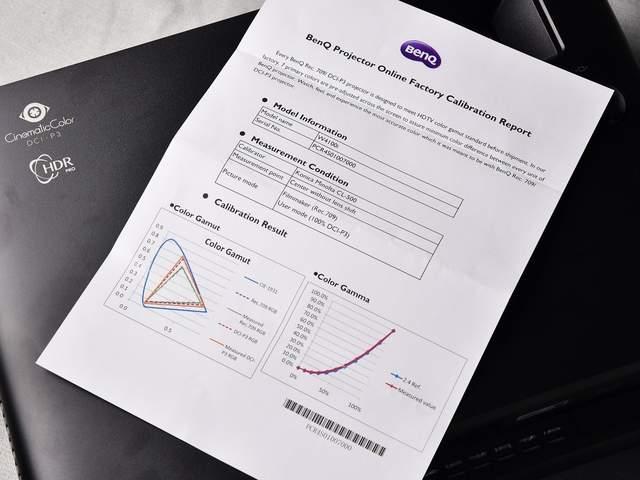 另外,每台明基W4100i出厂都带校色报告,敢标DeltaE<2真不是吹的。可能有些小伙伴就在想了,万元投影已经标到0.几的水准了,我为什么还说<2够牛?别忽略了!DeltaE色差值的前提一定是在100%DCI-P3准确下去谈这个,万元投影还停留在110%、120%色域夸大的阶段。加之明基W的数值一直标的比较谦逊,实际我这台DeltaE是1.73,特别适合对于色准有追求的用户。