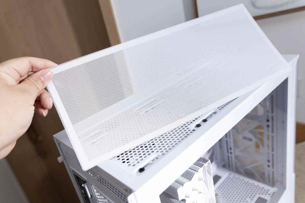 AEGIS宙斯盾S主机的防尘设计也非常全面,机箱顶部使用了磁吸式的防尘网,支持快速拆卸,用户后期维保除尘相当便捷。