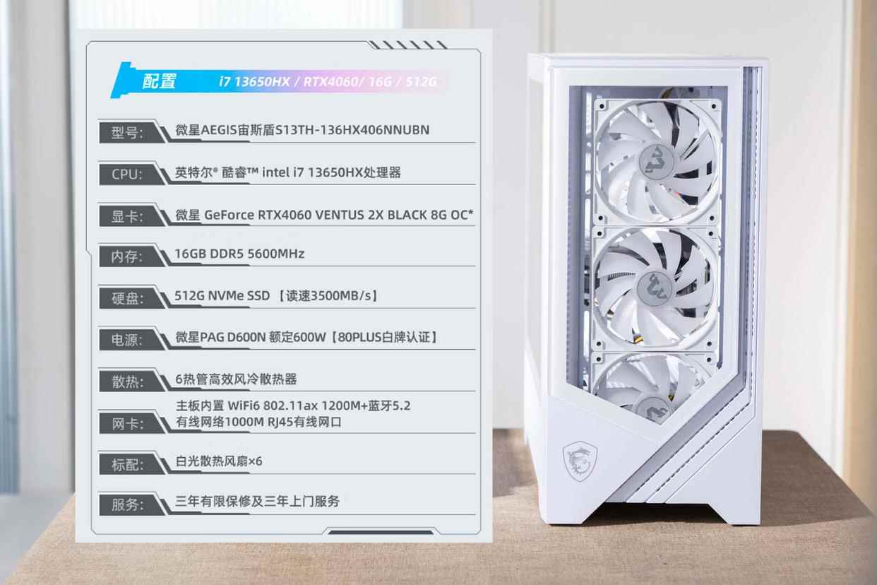 硬件配置方面,微星AEGIS宙斯盾S从入门到高端提供了多种配置供用户选择。我这次入手的是主打性价比的I7 13650HX和4060万图师的组合,整体性能表现非常均衡,主流游戏和各类大型软件都能流畅运行,能轻松实现办公,娱乐两不误。