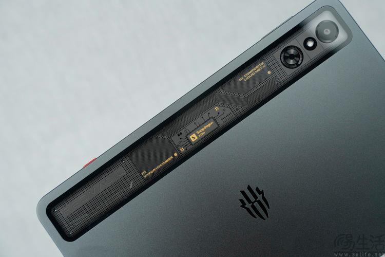 而且与绝大多数平板电脑不同的是,红魔电竞平板3 PRO还延续了红魔近年来的“纯平”机背设计理念,它的背部摄像头、内置主动散热风扇都被覆盖在一整块透明装饰盖板下方,完全不突出于机身。这样一来,对于需要将设备平放在桌面上,使用四指甚至六指同时操作的游戏(典型的例子就是许多音游)而言,红魔电竞平板3 PRO就可以完全避免其他平板电脑上因为摄像头凸起而导致“放不平”的尴尬。