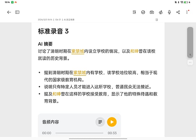 智慧语音功能在学习过程中也能发挥出相当大的作用,它可以把课上老师的录音迅速转成文字,并且能快速地提取摘要。当你观看外文视频等一些生肉时也不用担心看不懂,目前OPPO Pad 3柔光版已经支持了中文与英、日、韩等三种语言的实时翻译。