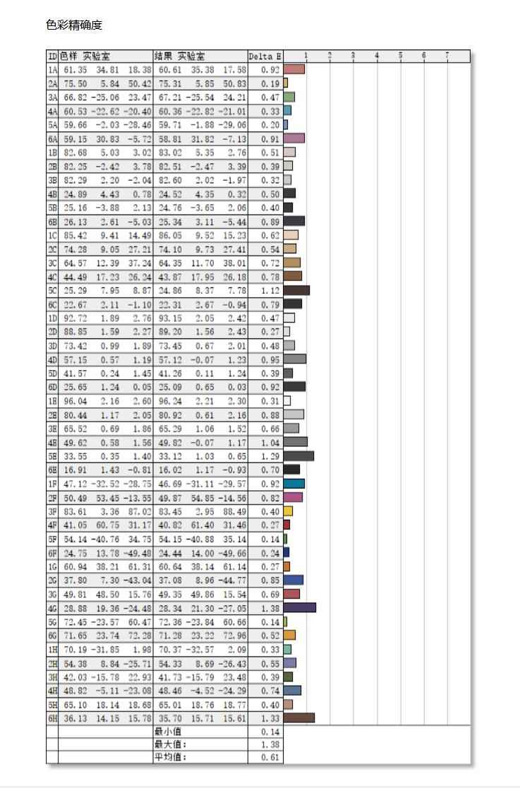 接下来,我们使用Spyder X2 Ultra校色仪,对技嘉MO27Q28G进行分析,测试前我们将显示器恢复出厂设置。从测试结果来看,技嘉MO27Q28G在默认模式下,拥有100% sRGB、95% Adobe RGB、99% DCI-P3以及81% BT2020的色域覆盖,属于顶级水平。色准方面,我们采用了48色方案的色彩精准度测试,测出显示器的最大Delta E偏差值为1.38,Delta E平均值仅0.61,色准表现非常优秀