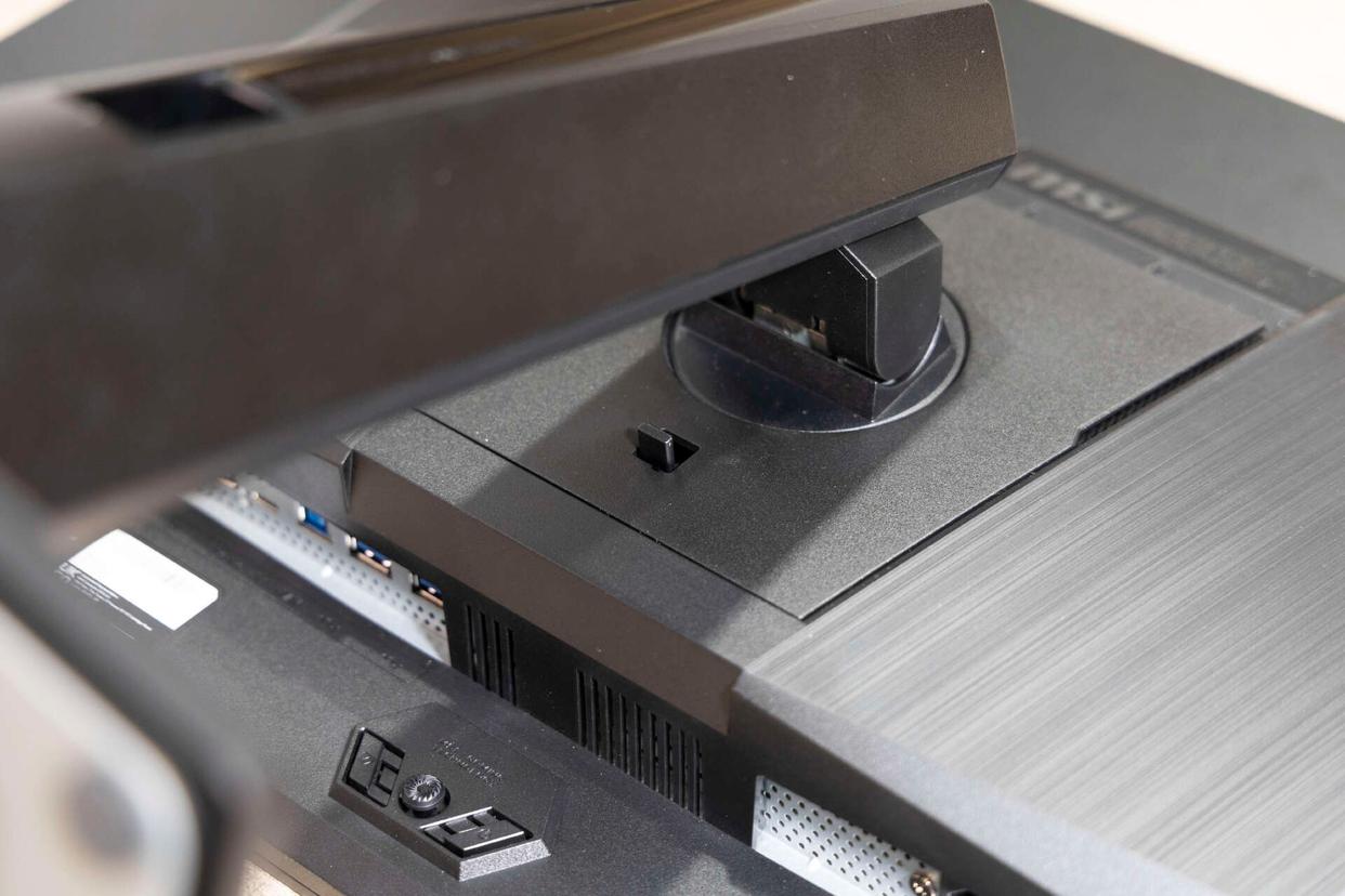 微星MPG 322URX QD-OLED显示器的原装支架的安装非常友好,底部带有快装锁扣,直接对准卡榫就能完美锁定,支架背板和显示器背板可以完美融合,整体性十分出色。
