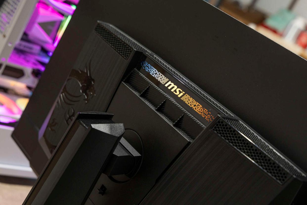 显示器底部框架中置了MSI的标识,在标识底部还设置了一枚状态指示灯。