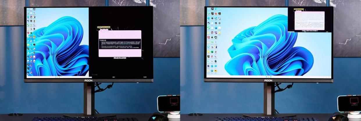 同时,AGON AG276UZD QD-OLED显示器支持PBP双画面和PIP画中画显示功能,能够同时显示来自两台电脑或其他信号源的两路信号。此外,该显示器配备了KVM功能,用户仅需一套键盘鼠标即可在不同信号源之间轻松切换,既方便又实用。