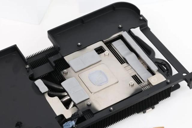 拆解之后,我们能够观察到散热器的内部构造设计极为精妙——其具备大面积铜底,与4根6mm镀镍热管相配合,借助回流焊接工艺以及饱和式鳍片结构设计,大幅增加了影驰GeForce RTX 5060 Ti星曜NOX OC内部的热交换面积,从而确保了散热效果的高效性。
