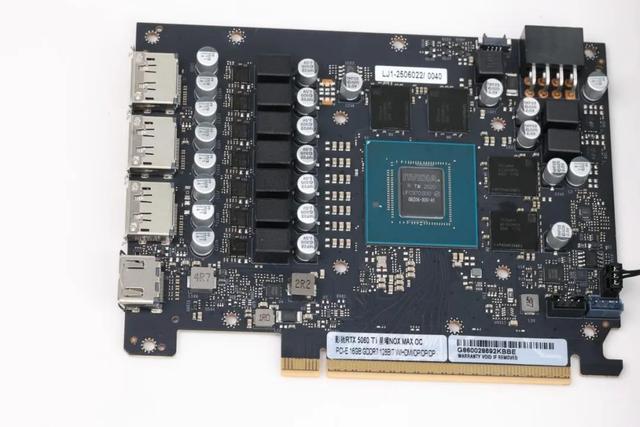 聚焦于PCB,我们能够发现,即便影驰GeForce RTX 5060 Ti星曜NOX OC采用短PCB设计,它依然预留了一定空间,以促进内部热量的散发。在供电方面,该产品运用了7+2相高品质供电设计,保障了内部元件的稳定运行。