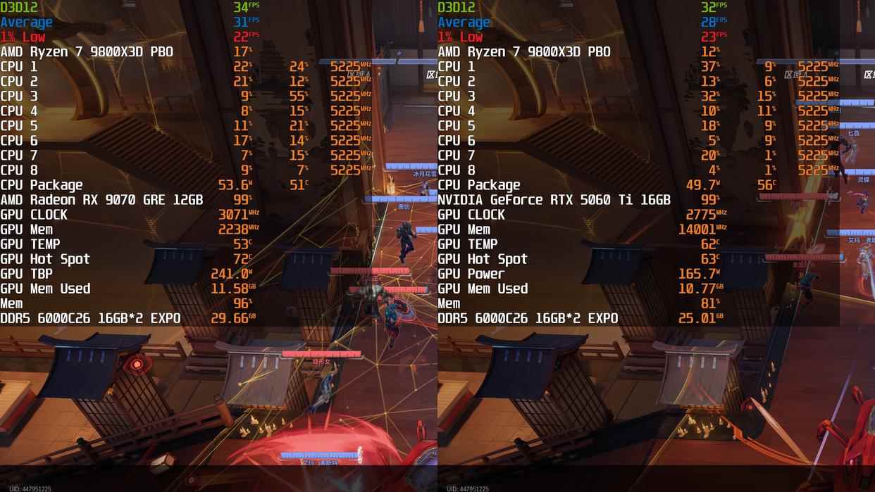 RX 9070 GRE和RTX 5060 Ti 16GB显卡对比测评