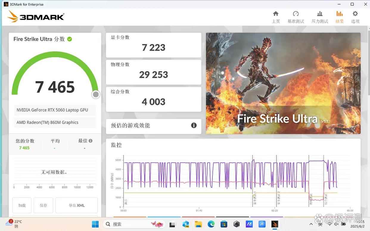 在体现DirectX 11游戏性能的3DMark Fire Strike Ultra、Fire Strike Extreme和Fire Strike项目测试中,天选Air 2025的成绩相比上一代也有大幅提升,分别达到了7465(显卡得分7223)、14789(显卡得分15256)和28466(显卡得分33056),可以流畅运行绝大多数3A游戏。
