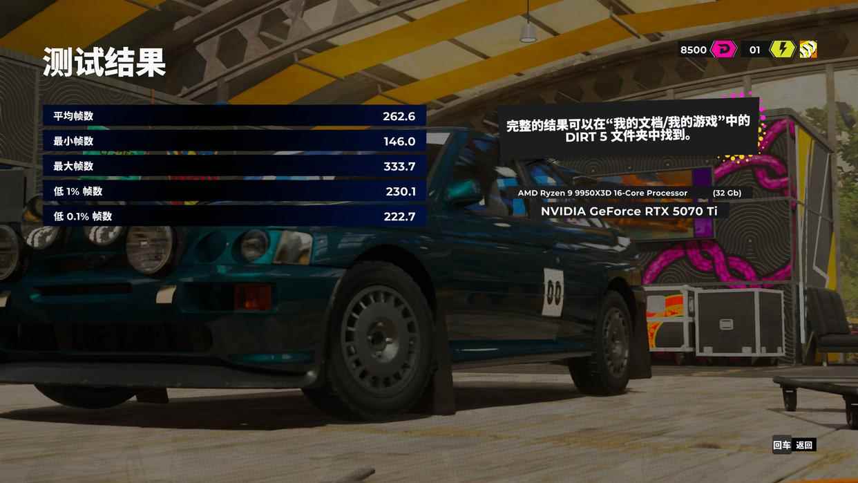 在《DiRT 5》极端画质下,R9 9950X3D 整体表现小幅领先 R7 9800X3D,虽然后者低帧略高但极限低帧更不稳,综合来看 R9 更适合高帧率无波动体验。