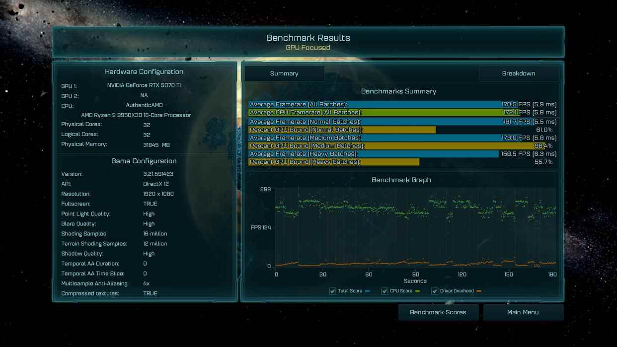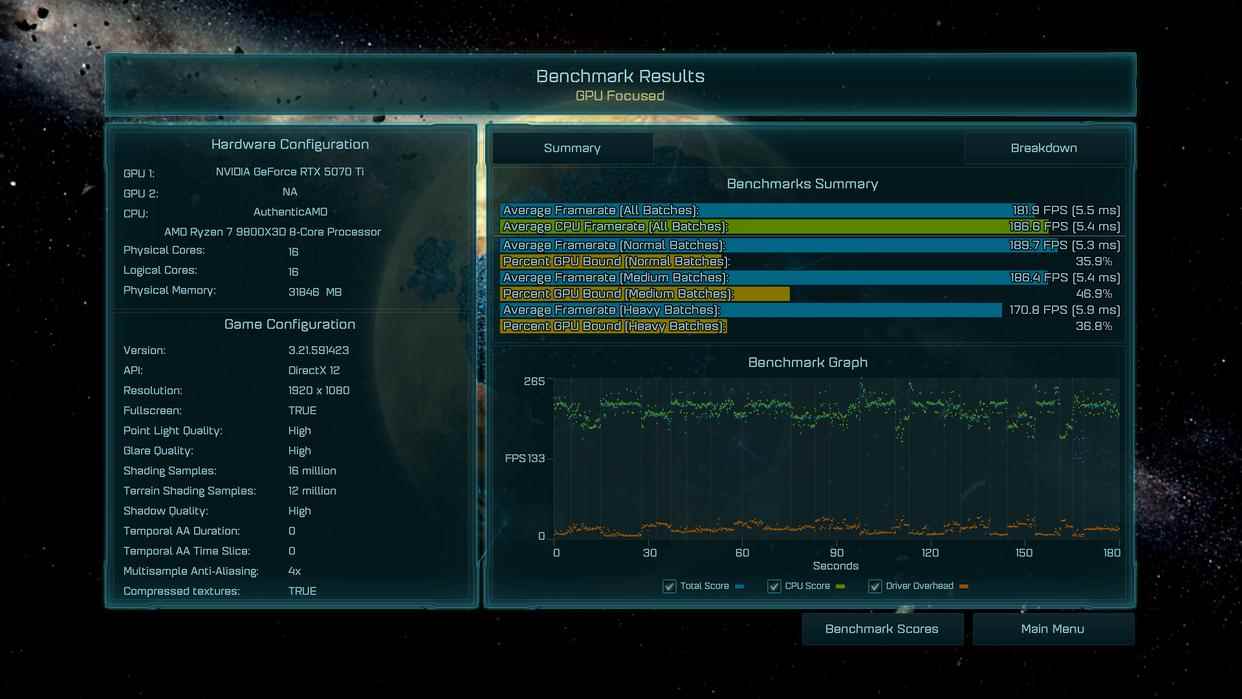 在《奇点灰烬》中,R7 9800X3D 全面碾压 R9 9950X3D,平均帧高出近 7%,更适合这类高频低延迟吃满型策略游戏。R9 多核未被充分利用,反而变成负担。
