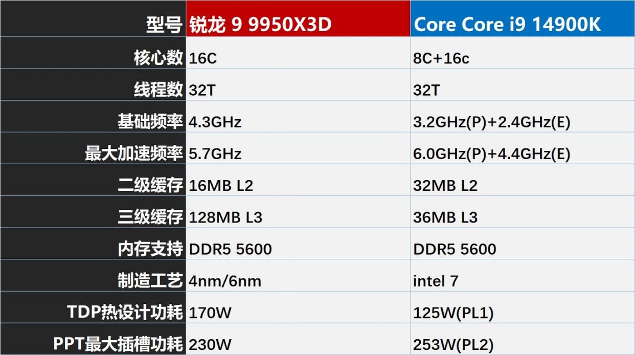 锐龙9 9950X3D和i9-14900K处理器对比测评