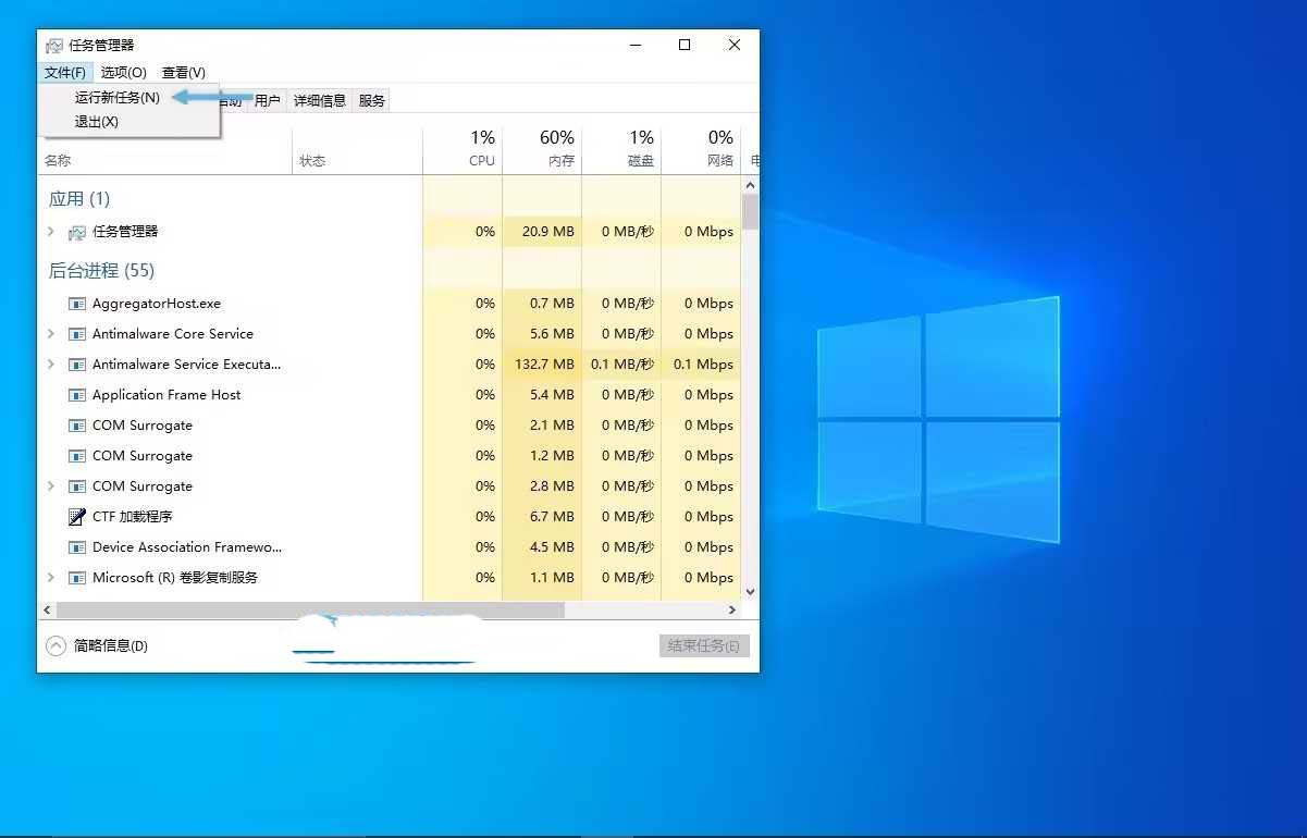 「任务管理器」不仅可以监控 Windows 系统性能,还能以管理员身份运行程序: