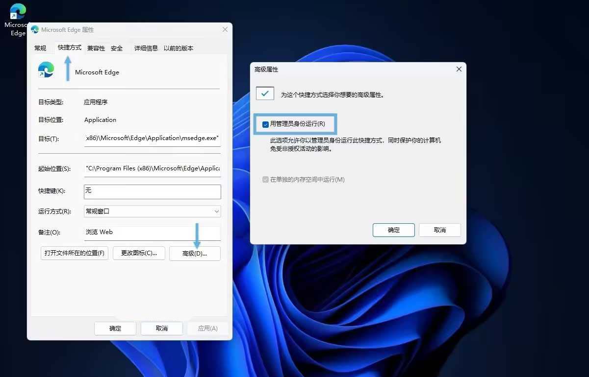 通过设置快捷方式的属性,可以在程序启动时永久以管理员身份执行,省去每次手动操作:仅适用于快捷方式。