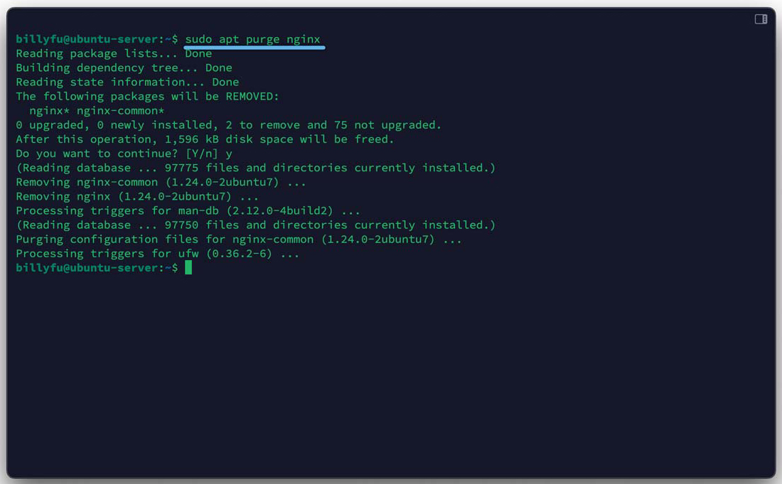如果要彻底移除软件包及其配置文件,可以使用apt purge命令: