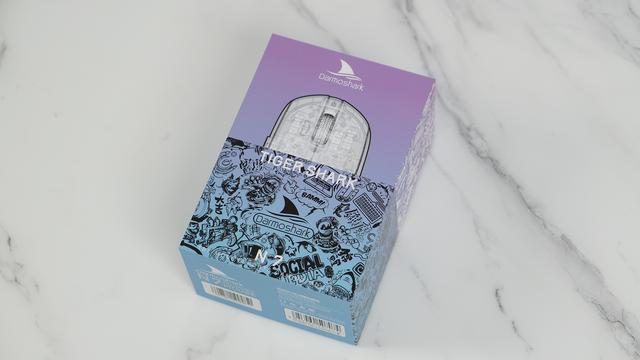 达摩鲨N7 MAX有普通和Max两个款型,白色、黑色和仙紫三个配色,我们手中的这款是N7 MAX仙紫。这是它的外箱,还是挺有设计感的。