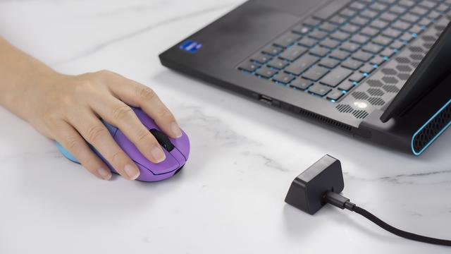除了鼠标之外,还有一块可以显示DPI、回报率和电池电量剩余及信号强度的显示屏幕,确实挺好玩的。