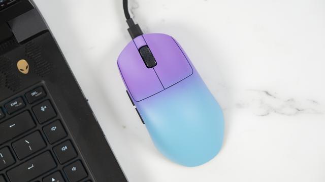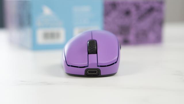 中间的光学部分是顶级的PAW3950传感器。两边分别是DPI、RPT调节按钮。因为是高强度使用了近三周才测试的,尽管我们拍摄前打理了一下,依旧有些灰尘,见谅。