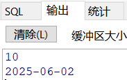 -- 方法一: DECLARE v1 number; v2 varchar2(20); BEGIN v1 := 10; dbms_output.put_line(v1); v2 := TO_CHAR(SYSDATE, 'YYYY-MM-DD'); dbms_output.put_line(v2); END; -- 方法二: DECLARE v1 number := 10; v2 varchar2(20) := TO_CHAR(SYSDATE, 'YYYY-MM-DD'); BEGIN dbms_output.put_line(v1 || chr(10) || v2); END;