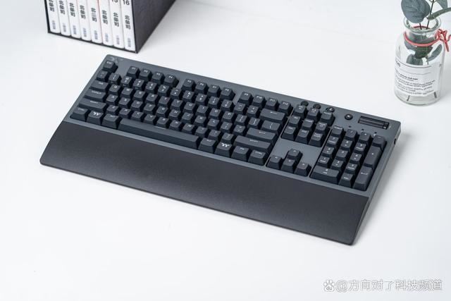 键盘我们选择的是TT(Thermaltake) G821 三模机械键盘 (樱桃轴)。它支持蓝牙、2.4G、type-C有线接入三种连接模式,通过2.4G连接时可实现1000hz/1ms的回报率,有线接入时则可实现专业电竞性能和全键无冲。键盘采用标准104配列布局,包括手托在内均采用深色设计,原厂PBT键帽是磨砂质感,手感很细腻。CHERRY樱桃轴为其出色的游戏性能和指尖反馈提供了保障,单键5000万次的使用寿命,外加2年质保,更让我们没有了后顾之忧。此外,它还支持自动休眠及电量检测,不会有关键时刻没电的困扰。