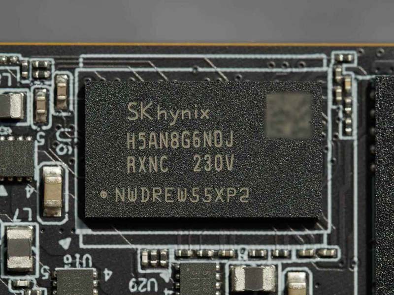十铨T-FORCE GC PRO采用了NAND与DRAM 1000:1的足容设计,搭载了一颗来自SK海力士原厂的低功耗DRAM缓存颗粒,容量为2GB: