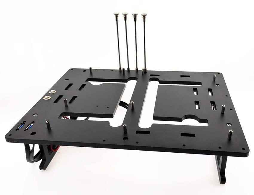 这类机架其实有用铝型材组装的便宜方案,不过个人感觉在颜值方面差了点事儿,不如CNC加工的铝坨坨来的有质感。就这样找了很久后,最后在闲鱼下单了一台山东老乡做的立、卧、斜三用的开放式机架,价格580元。