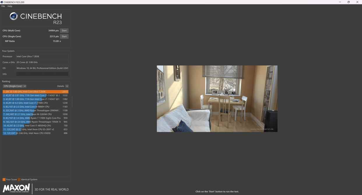 在Cinebench R23中,CPU的多核得分为34904,单核得分为2313分,也和我在Z890平台测试的结果几乎无差: