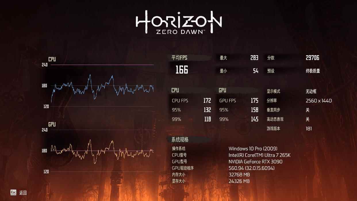 在《地平线:零之曙光》中,2K使用终极质量预设,测得平均帧为166,同样也很流畅: