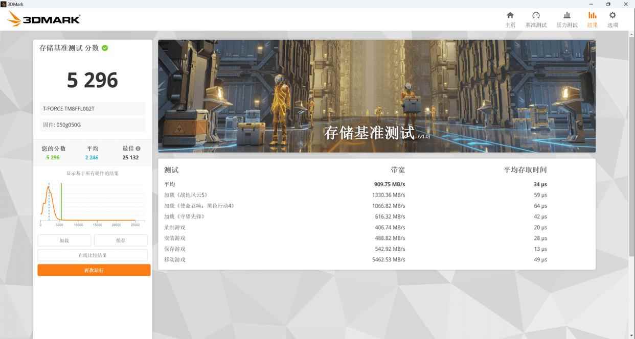 在3DMark的存储基准测试中,这款SSD得分为5296,同样远胜一众PCIe 4.0 SSD: